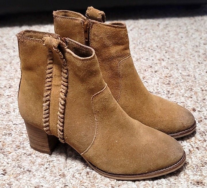 Stylish tan suede ankle boots. Chunky heel. Side zipper closure. Brand: Naughty Monkey. Size: 7. Heel height: 2.5". Will not ship in the original box. No damage or defects. No trades. Comes from a smoke-free home. Final price unless bundled. 10% off 2 or more items. Always available for any questions. Unfortunately, I no longer do holds. 1st come, 1st serve. You are more than welcome to pay and pick up at a later time if needed. Shipping available or local pickup only. I am located in Liberty Lake, 1 block from the lake. I accept cash (exaxt amount), Venmo, PayPal, or CashApp. Thanks for your interest in my listing.