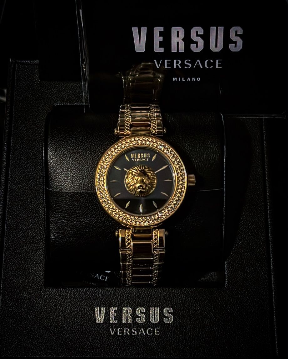 • Brand:Versace • Model:Versus Brick Lane Lion Crystal VSP646921 •MM Size: 35MM •Movement Type: 2 Hand Swiss Quartz • Dial Color/Style: Black Sunray Dial • Price: $310 Video of watch as well if need with flash