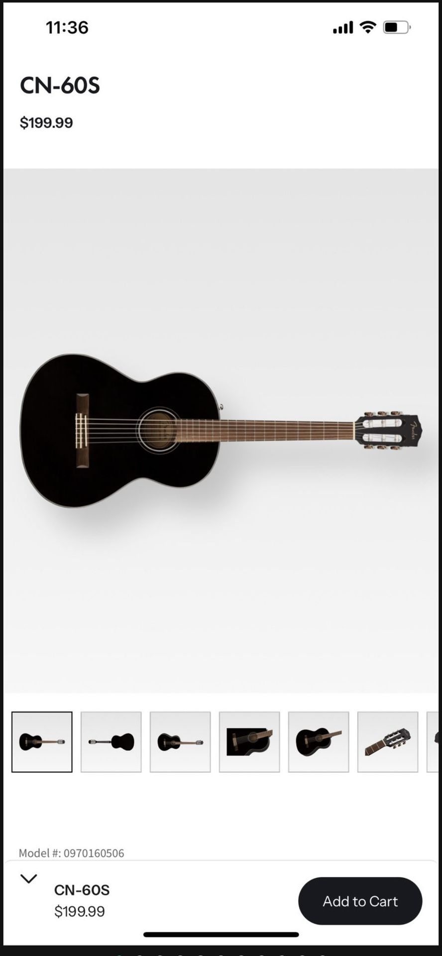Fender CN-60S Nylon Acoustic Guitar In Black. Brand new in box.