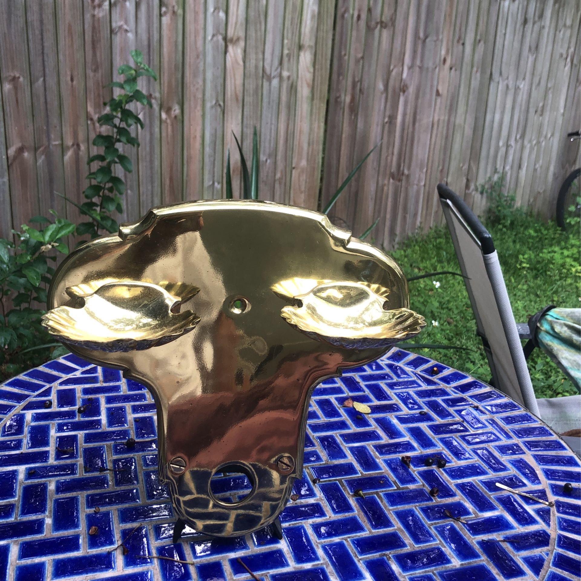Vintage Brass Seashell double Dish Key Tray Soap Holder Gold Beach Decor Ocean 11"W 12"H