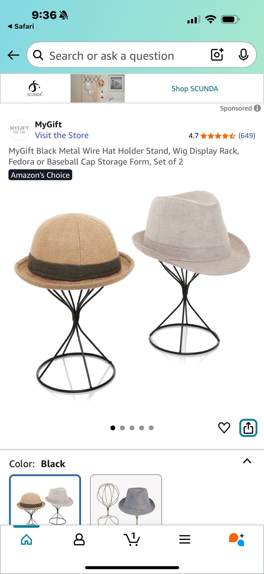 Black wire hat or wig stands. Like new condition. Free Pick up in Hollywood