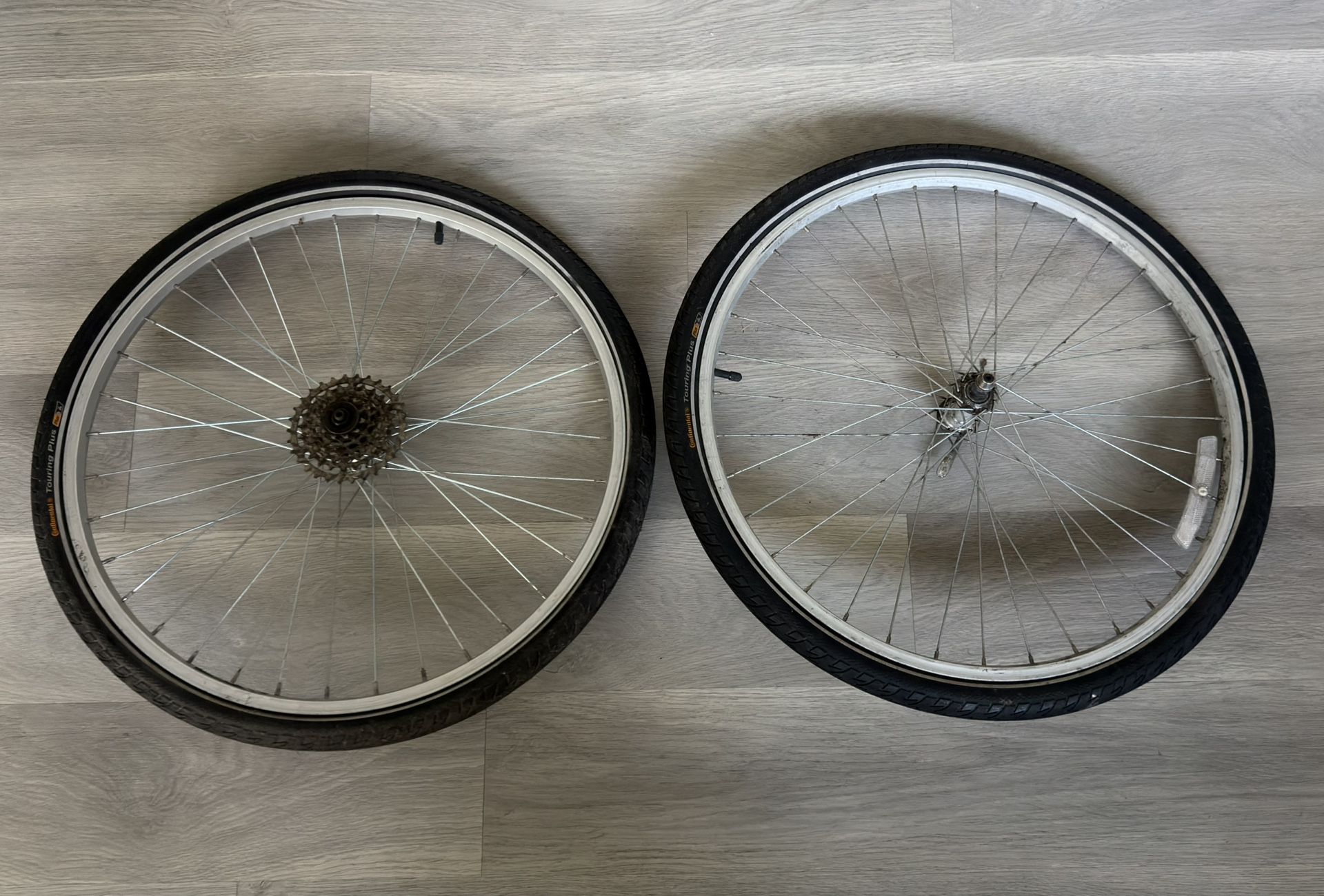 The Continental Touring Plus Reflex Tires are a top pick for cyclists seeking a durable, puncture-resistant tire for urban commuting and touring. Its robust construction and reflective sidewalls enhance safety and longevity, making it ideal for navigating city streets and varied terrains with confidence. The rear tire has a XLC disk