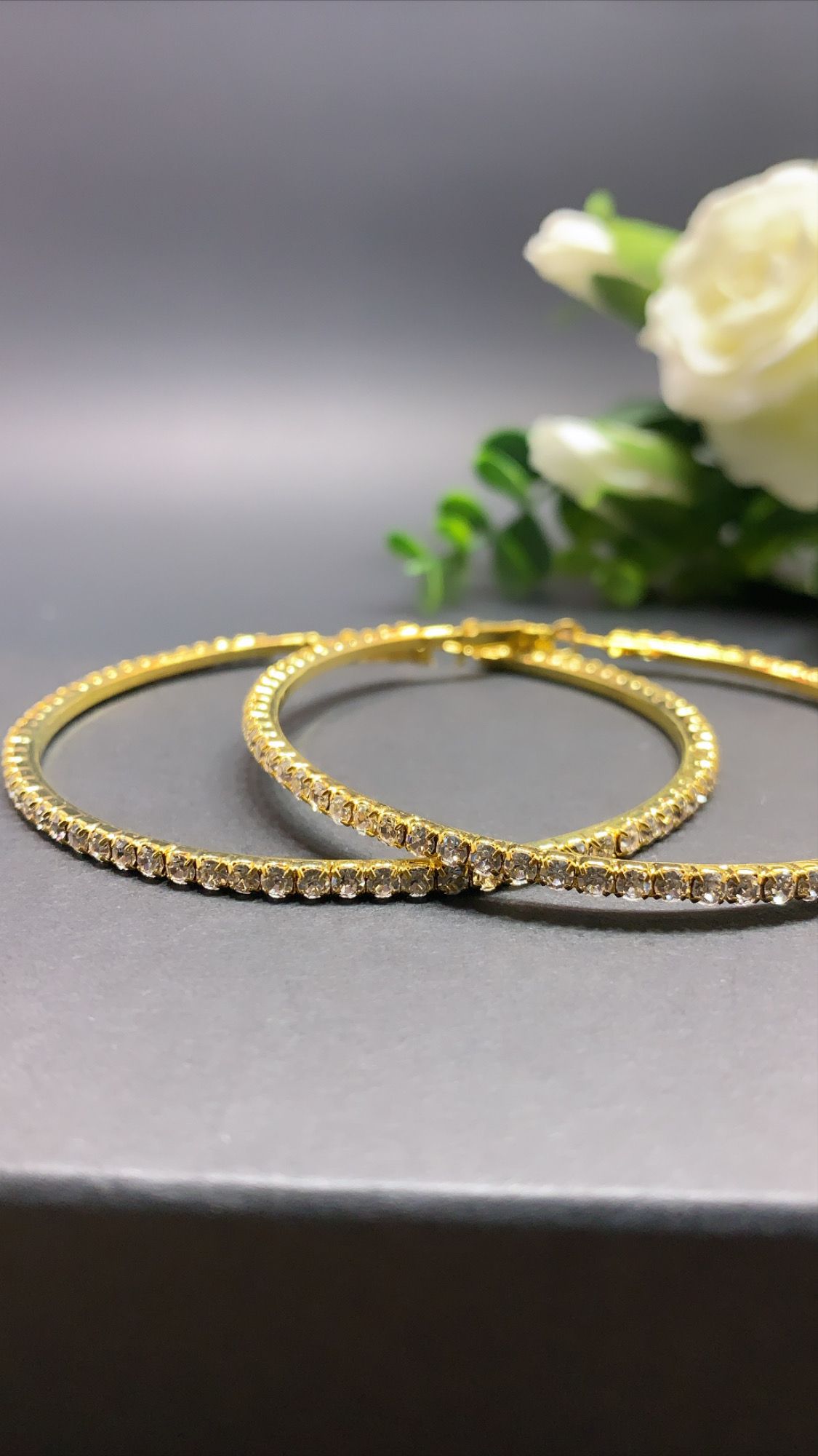 18K Gold Plated 86mm Big Circle Rhinestone Hoop Earrings, Gold Color