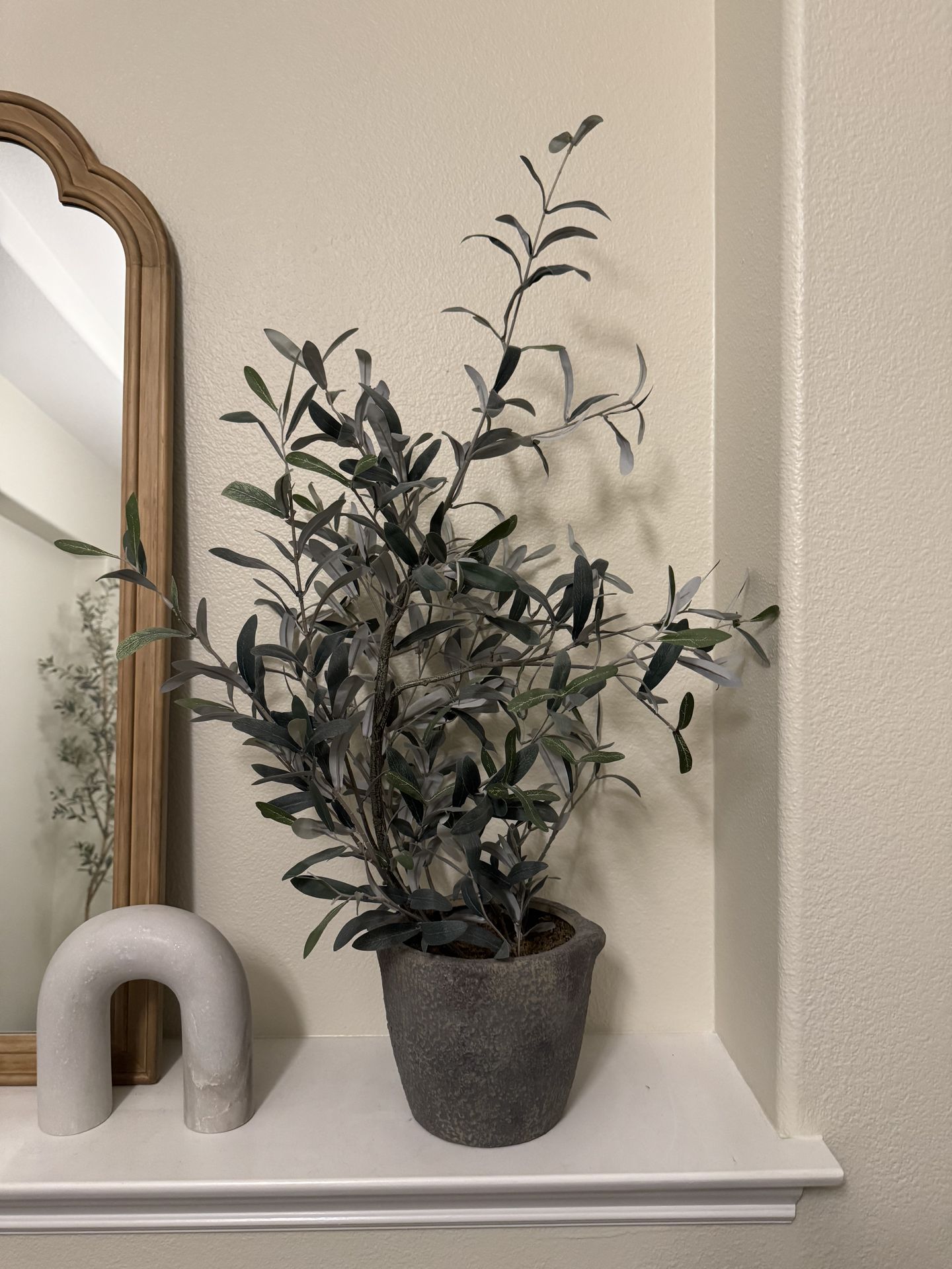 Fake olive tree plant with gray vase planter
