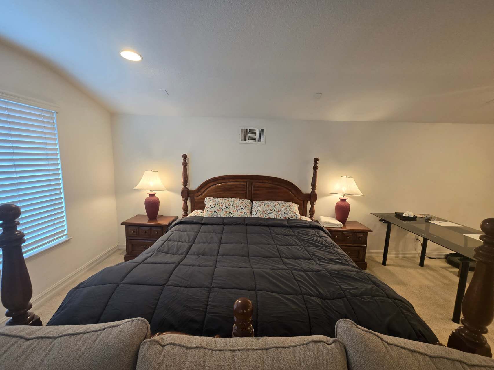 King size bed set for sale, includes: King bed frame Box spring King mattress Two nightstands