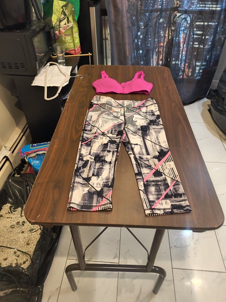 IDEOLOGY WORKOUT SUMMER PANTS. ACRYLIC AND STRETCHY . AND ALL IN ONE MOTION SPORT BRA. Sized large for pants. Sport bra is a 34 B. Offer price 40$