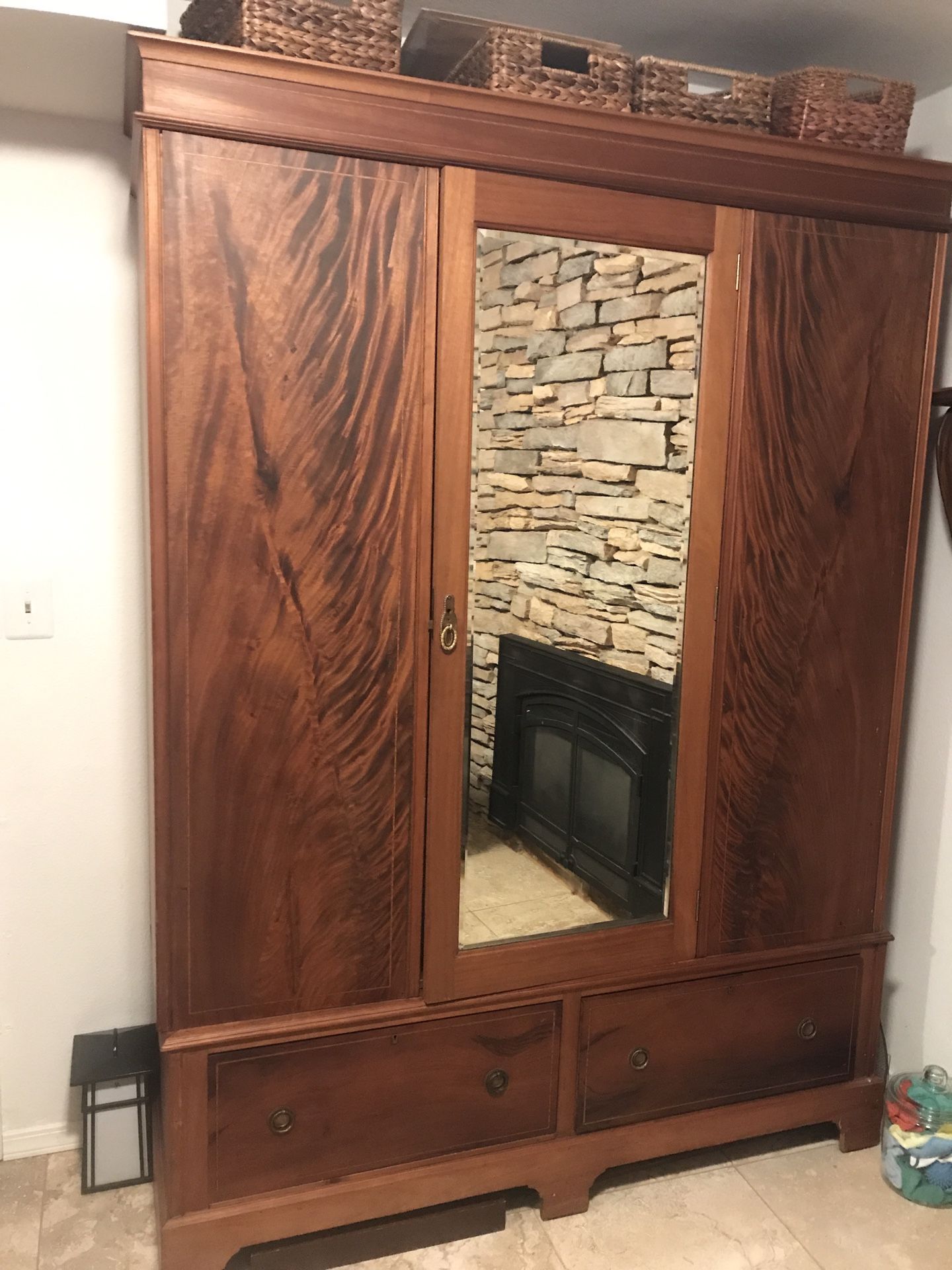 This is a gorgeous piece of furniture. The wood cut is amazing. It comes apart in 3 pieces but it is solid and heavy . Please come prepared with someone to help you move this. I am in downtown Edmonds near the ferries. Please let’s be respectful of each others time. Cash only. Thank you. 80 tall 60 long 20 wide