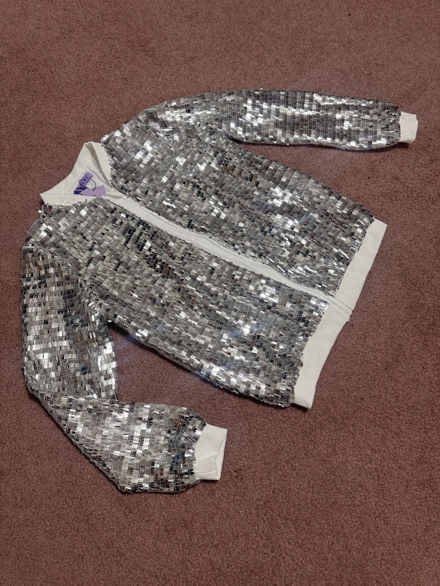 New medium silver sequin metallic zip up short jacket coat coat party evening
