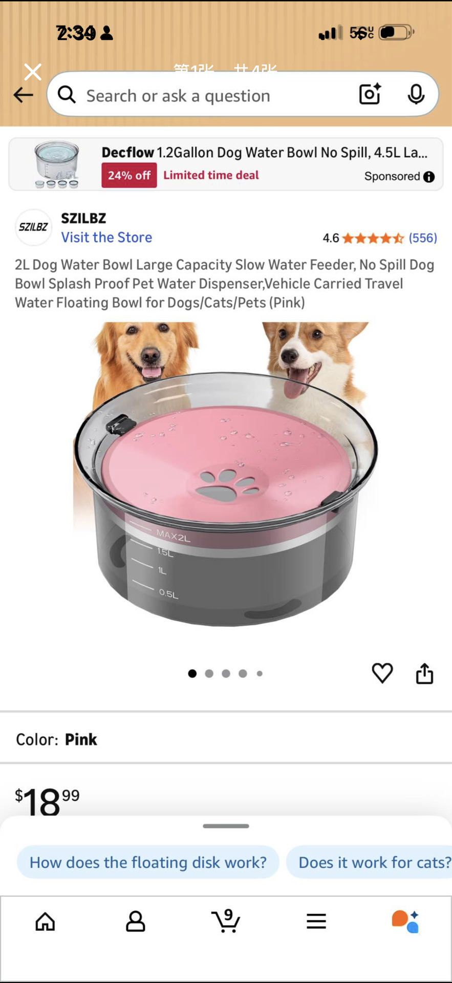 2L Dog Water Bowl Large Capacity Slow Water Feeder, No Spill Dog Bowl Splash Proof Pet Water Dispenser,Vehicle Carried Travel Water Floating Bowl for