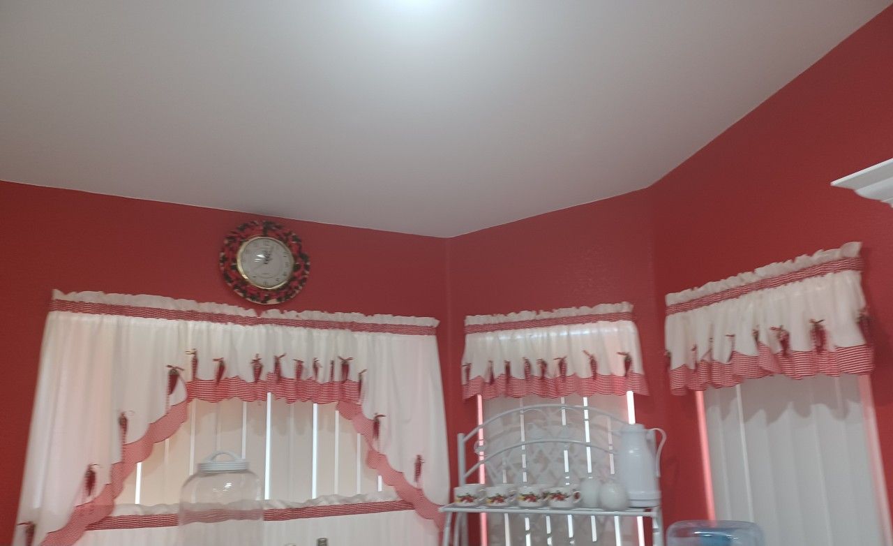 Have curtains, dishes, ceramic canisters, wall decor, clock, etc.. Too many to list.