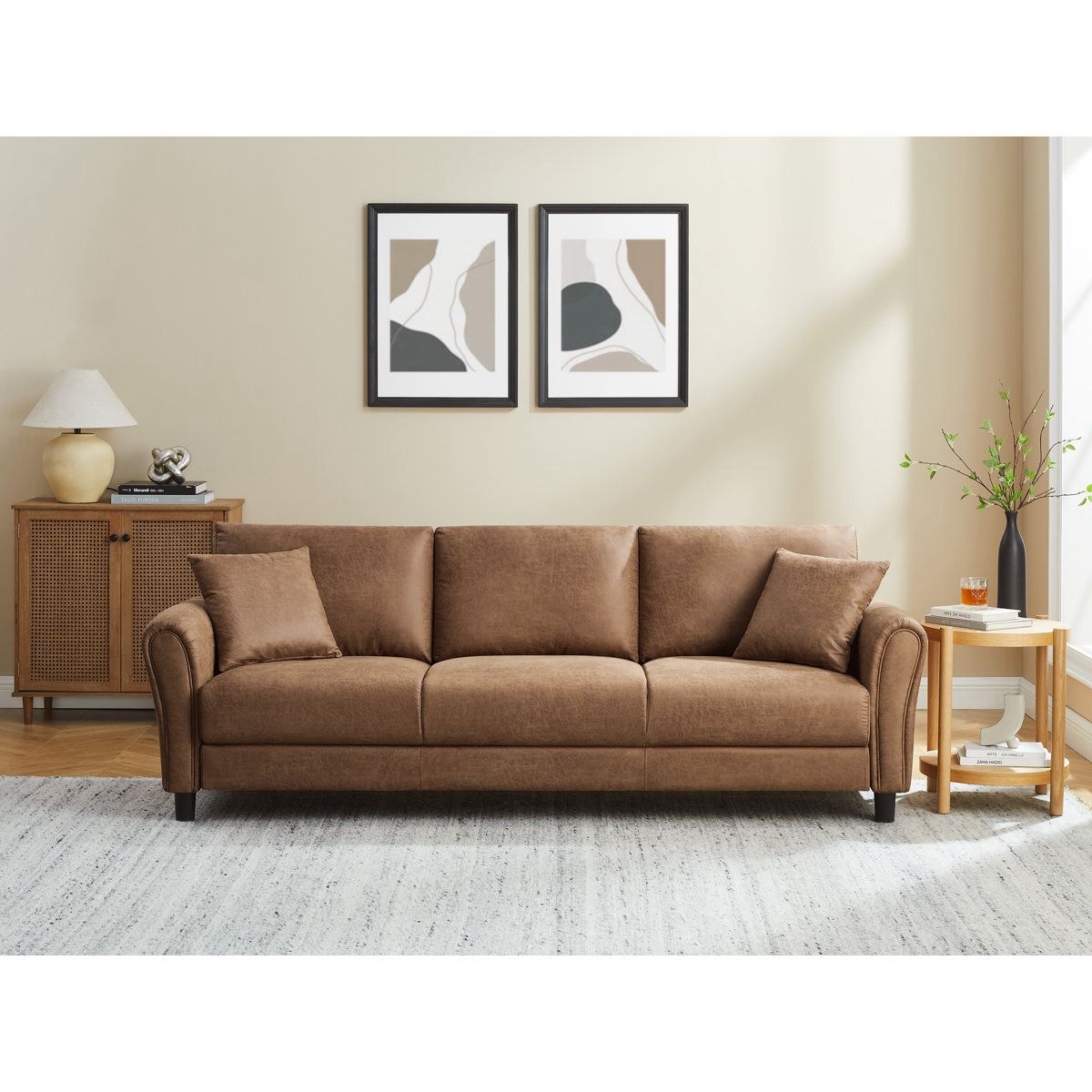 86.5“ Mid-Century Modern Faux Leather Rolled Arm Couch ,3 Seater Sofa