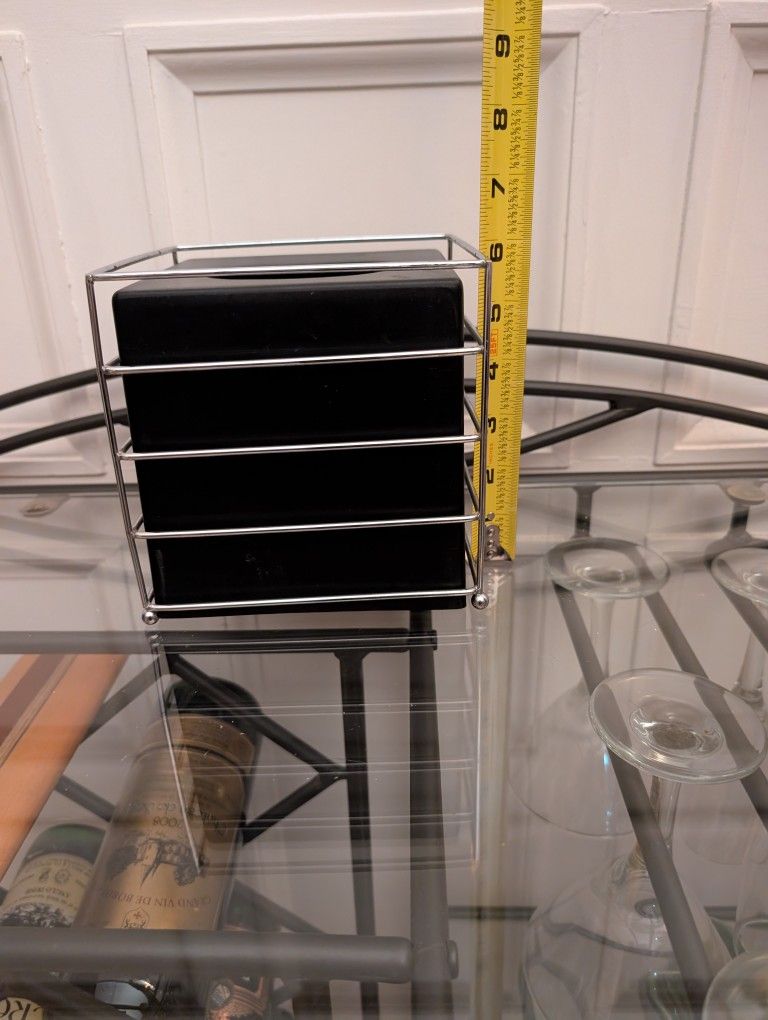 Black and silver tissue holder 6in x 6in Willing to meet in Detroit and Clinton Twp Area Check out my other items (box1)