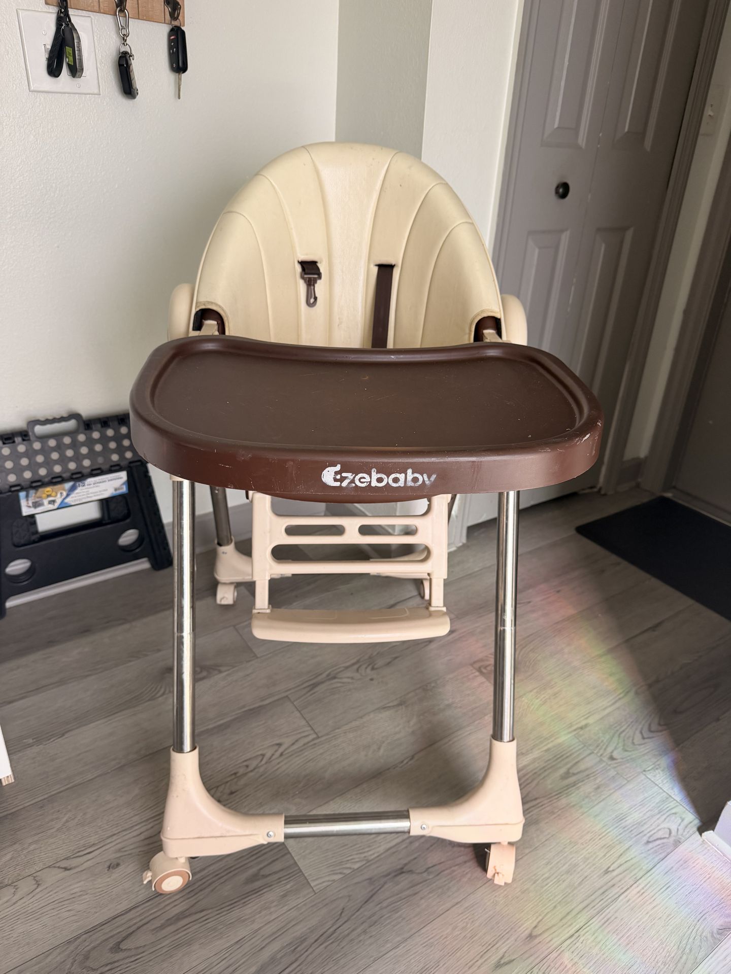 Modern high chair , very comfortable and versatile. Reclines and shortens height on different levels .