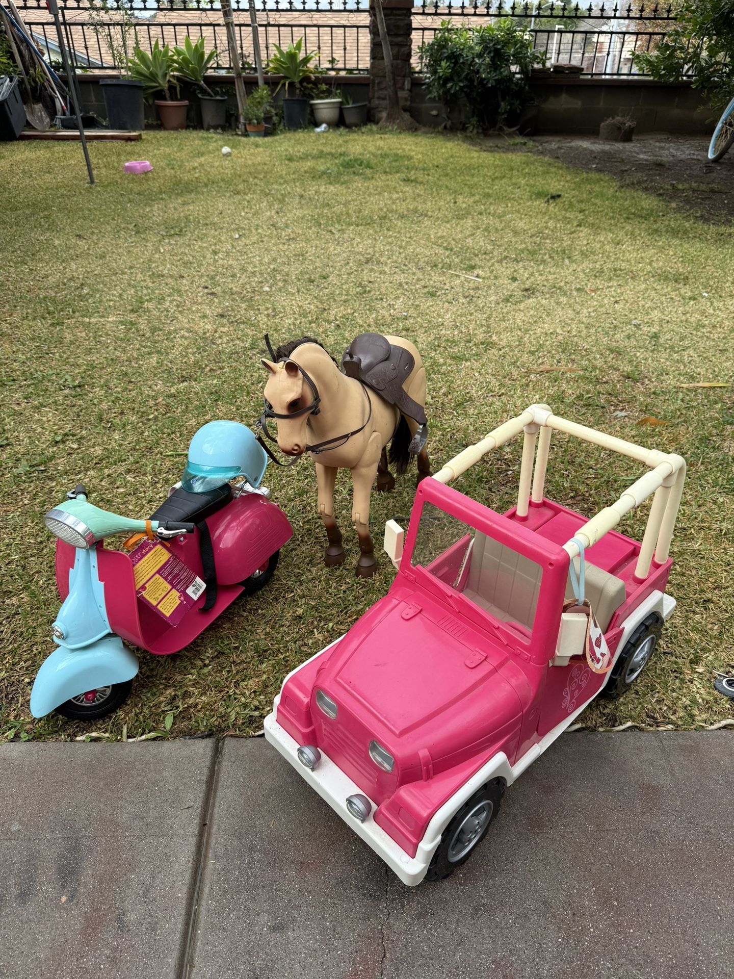 Horse with Saddle Pink Jeep Motorcycle with Helmet $20ea or all 3 for $50