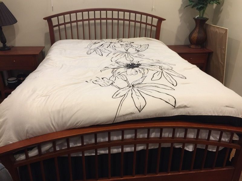 Comes with two night stands, bed frame, headboard and footboard. Pick up only. Bay park