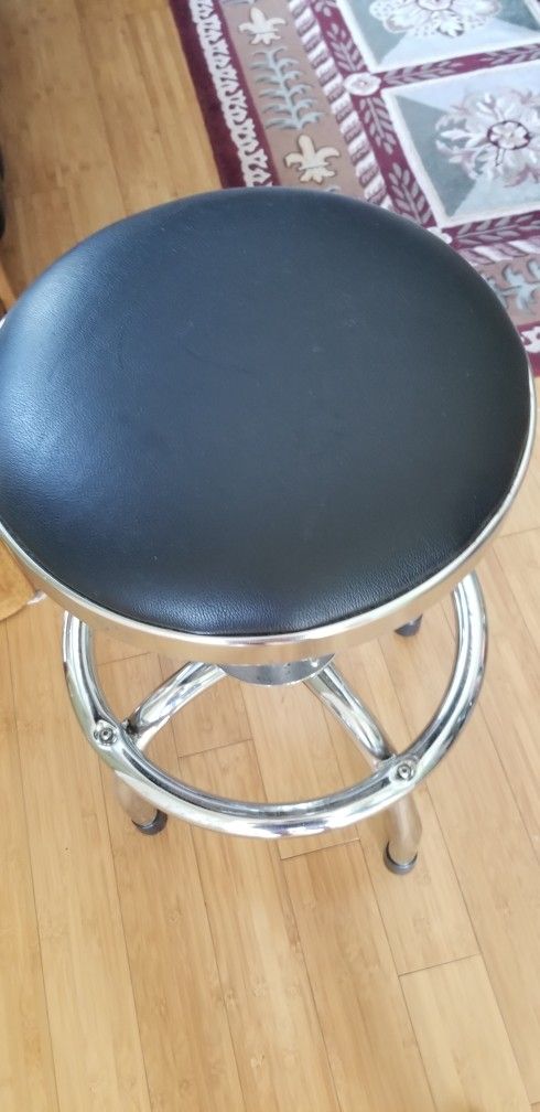 New Leather Stool Black With Silver Chrome. Comes From Non Pet/Smoker Home.