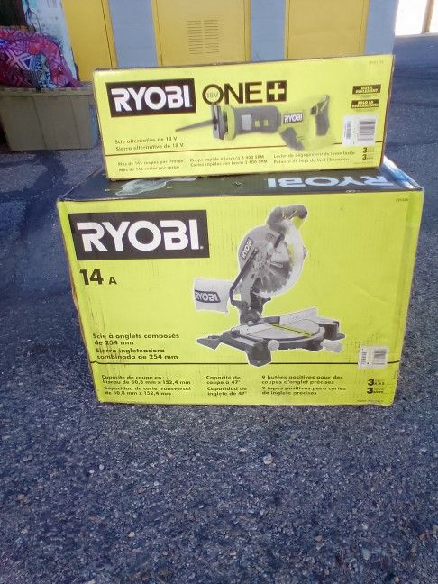 Ryobi compound miter saw and sawzall both in the box. $75 for both.
