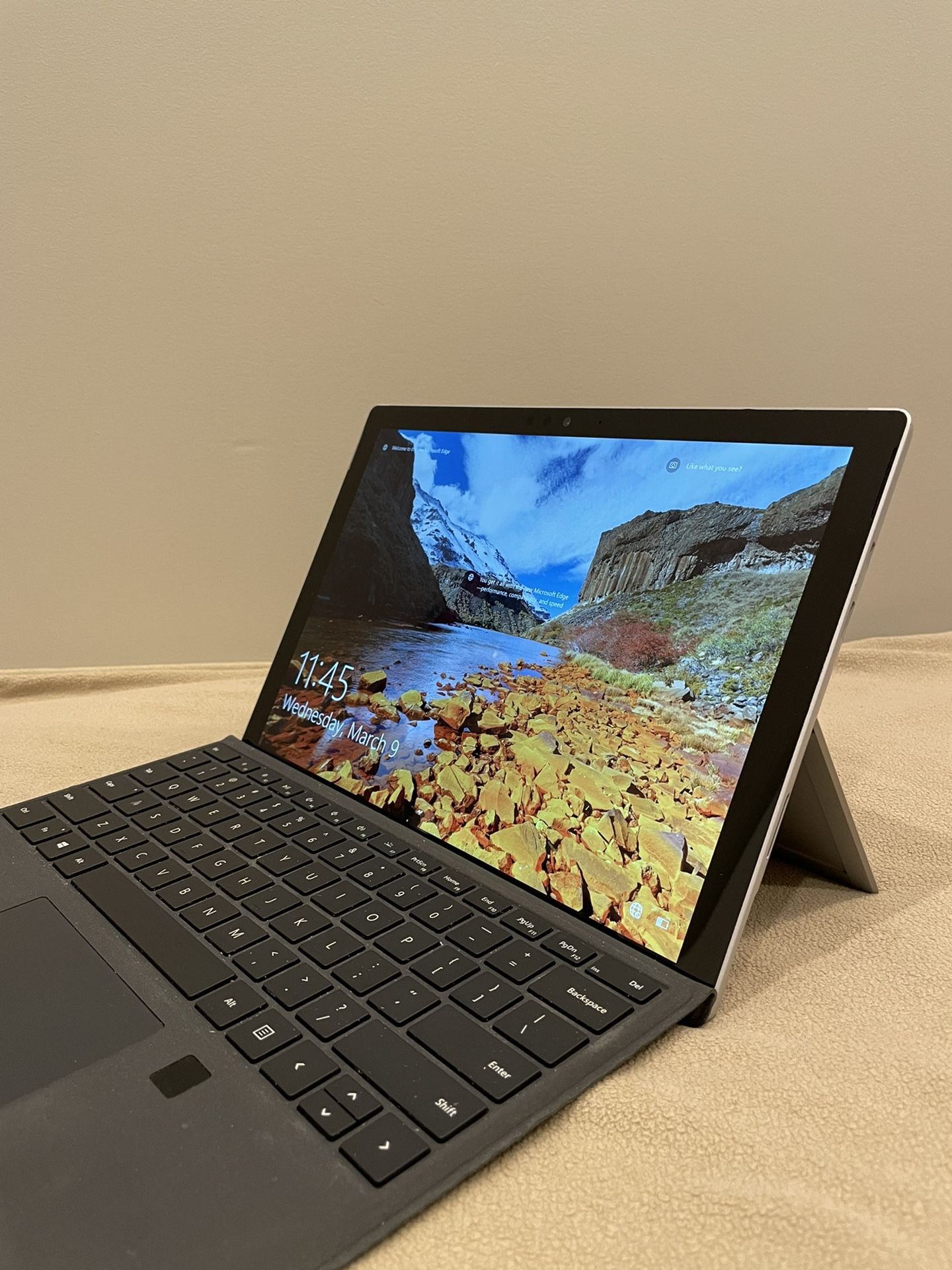 Selling a Microsoft Surface Pro 5, Windows 10 ultraportable 2-in-1 full laptop / tablet PC. It’s in great condition, fully functional, reset and ready for a new user, comes with original charger and keyboard. Overall its a great PC, very fast with its SSD storage and powerful Intel Core i5 quad-thread processor. It’s light and portable, perfect for school or work on the go. The 1080P screen is bright, color accurate and clear. The removable keyboard is easy to type on and the trackpad is great as a MacBook Air. It also supports Windows Hello for Face Unlock and a Finger Print reader as well. It’s large touchscreen is always useful to have. Specs: Intel Core i5-7300U 2.6GHz (dual core, 4 threads) 8GB 1867 Memory Intel HD Graphics 620 Toshiba 256GB SSD Large Touchscreen and 1080P screen. Removable Keyboard / Trackpad Dual Front / Rear Camera Magnetic Charger Full USB 3.0 Mini Display Port SD Card Reader Disregard Tags: MacBook Pro Air Windows 10 Laptop