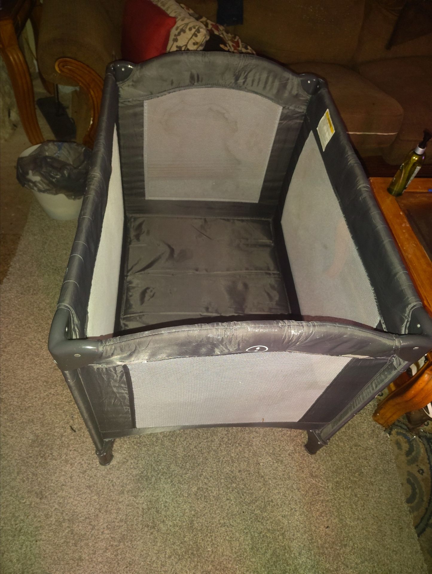 This image shows a portable playard, often referred to as a "pack and play," with a similar model being the Graco On the Go Zip. has one default to it but works perfectly make best offer who was up for travel
