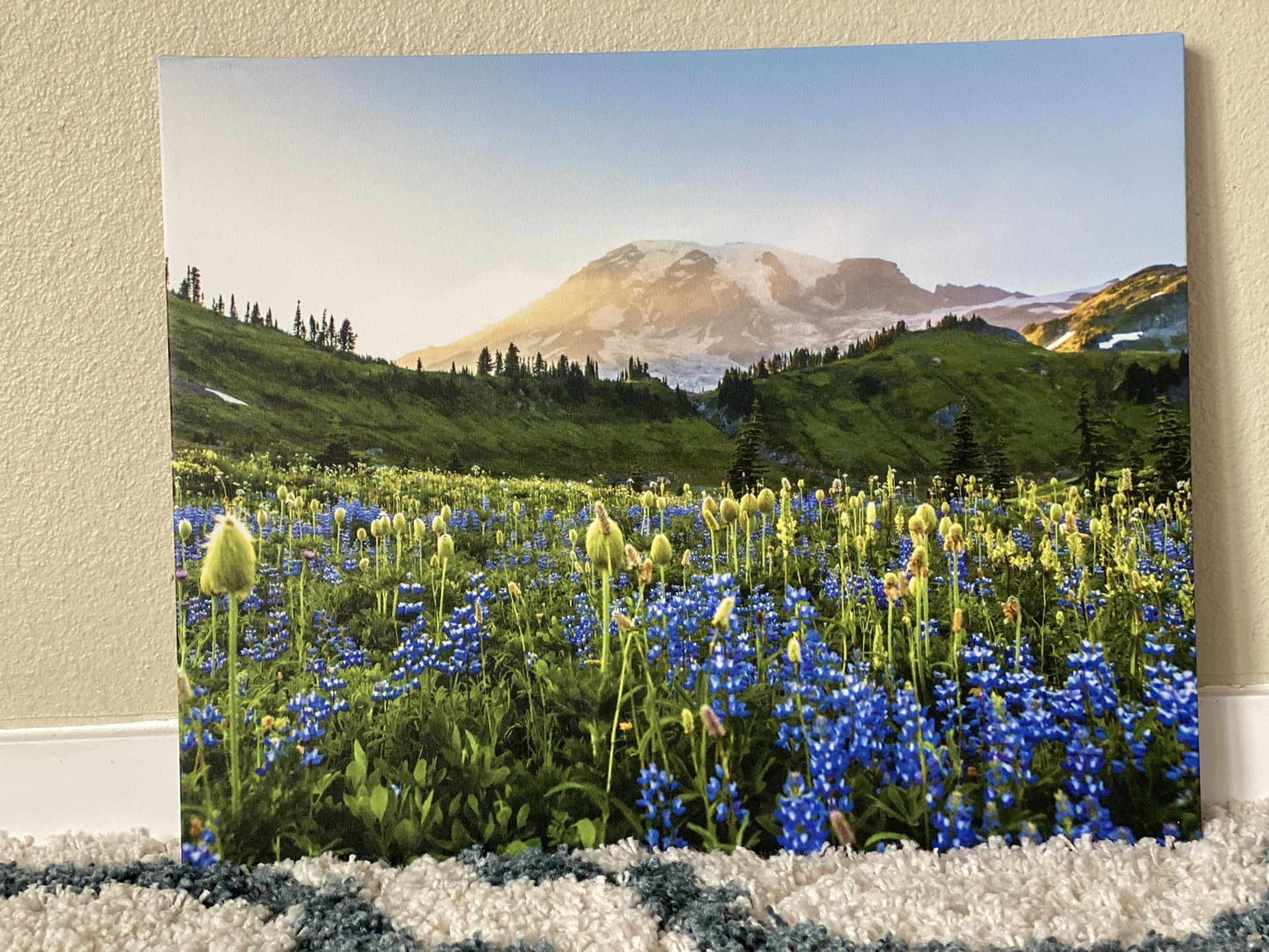 Freshly printed and new…Beautiful Mt. Rainier paradise valley original printed 16x20in Canvas. Original photo is also available to buy.