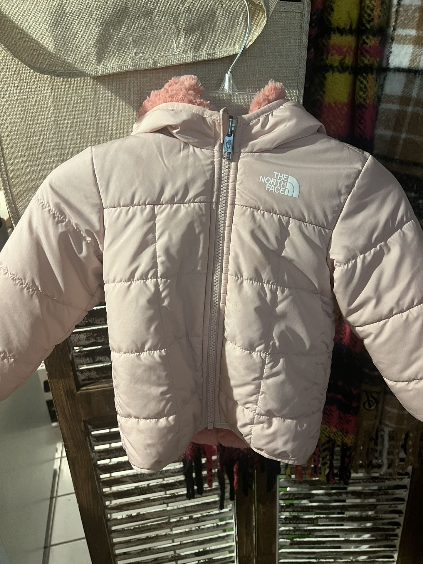 Tnf pink toddler coat 18-24 months Used - 2 stains shown in picture(sleeve and front area) In very good condition