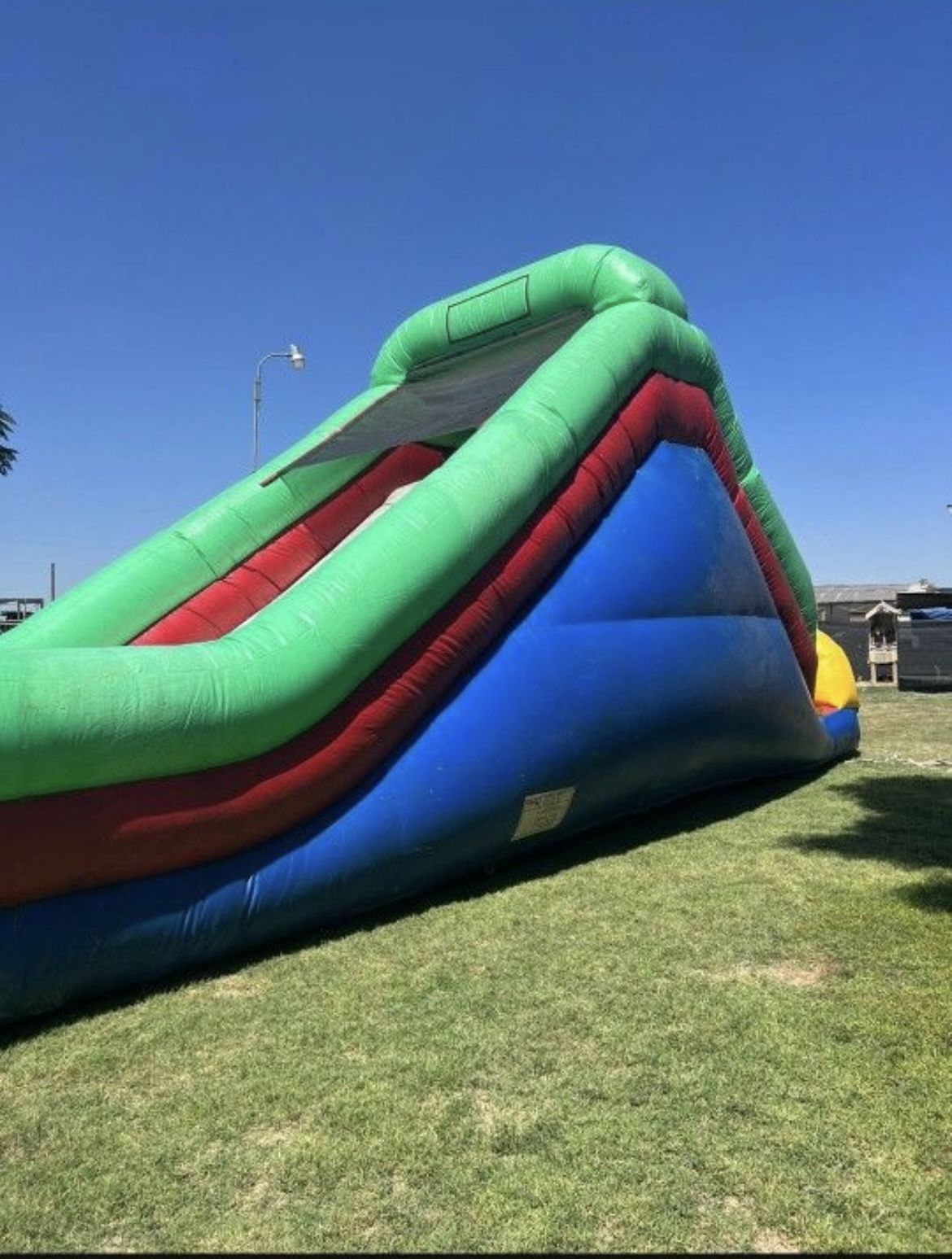 Very large slide good for adults /kids perfect for parties a pool use wet or dry very heavy commercial grade used lots n works great ..