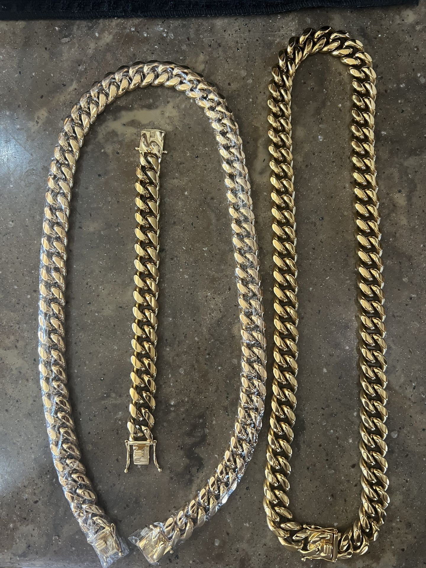 WILL NOT FADE Brand New Sterling Silver Gold Plated Cuban link chain and bracelet set 16mm Chunky Chunky Chain and bracelet set WILL NOT FADE Money Back Guaranteed if not absolutely satisfied with your purchase WILL NOT FADE Chain comes in plastic