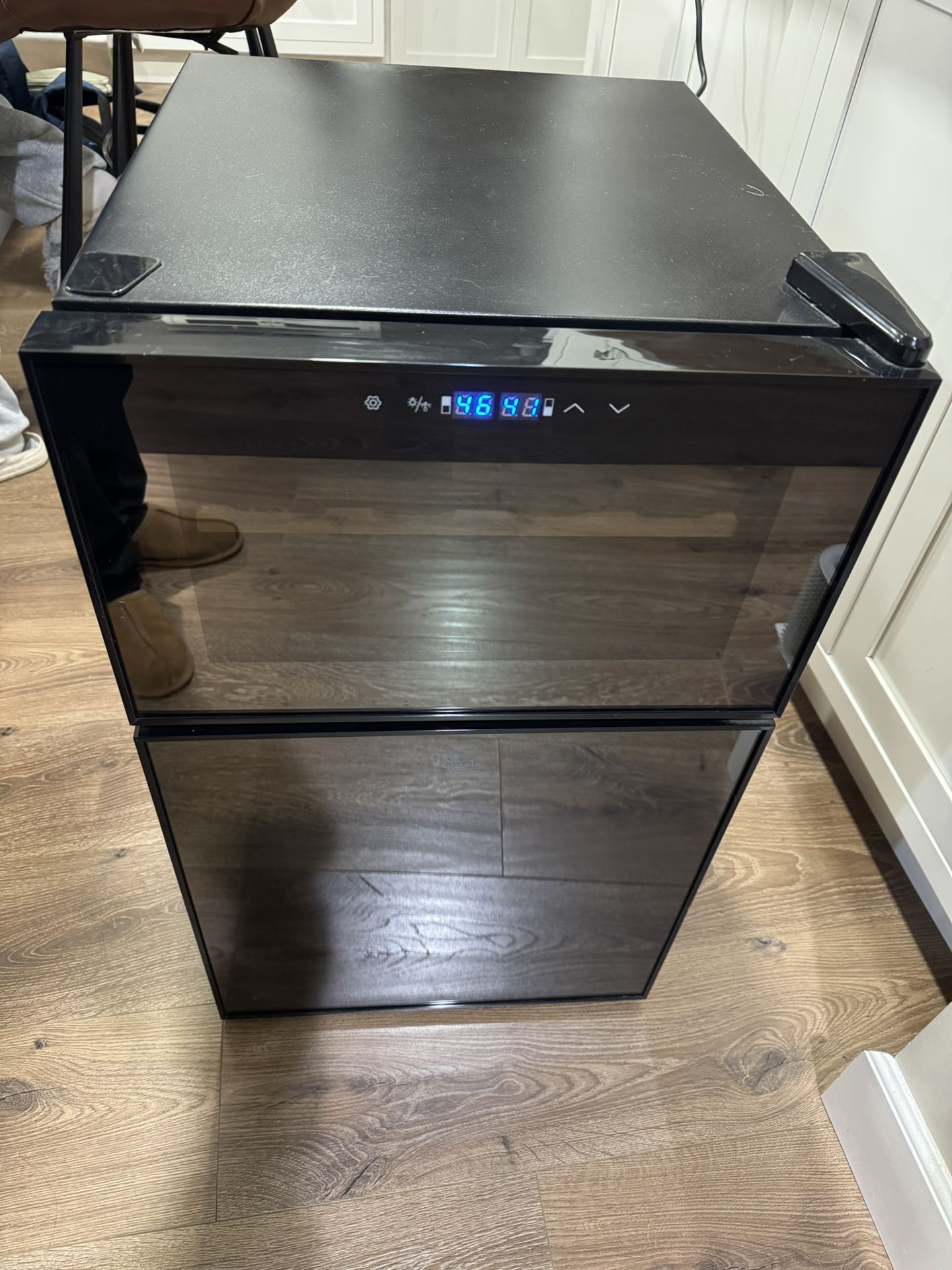 Monoprice Strata 2 zone beverage cooler. 17”W x 29”H x 21”D