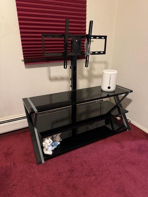 Black TV stand - holds up to 65". Pick up OR delivery in Bayonne, Jersey City or Union City only.