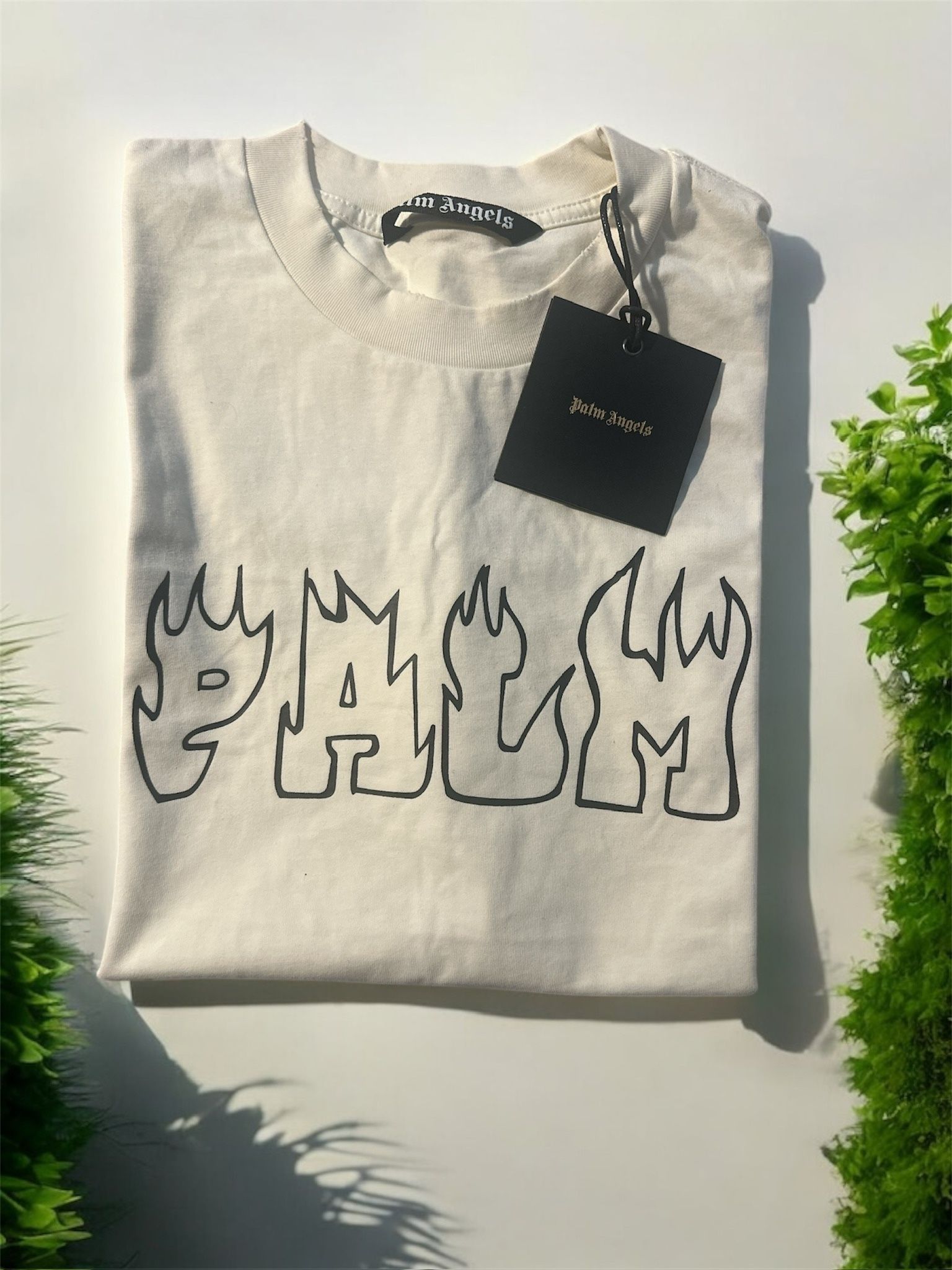 Elevate your casual style with the Palm Angels Cream and Green Graphic T-Shirt. Featuring a bold palm tree design, this shirt offers a unique and trendy look. Perfect for any casual outing.