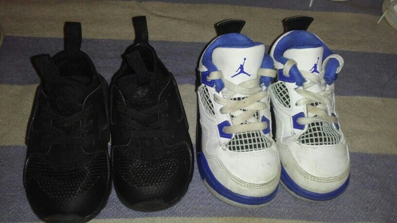 Baby shoes black huraches and blue and white jordans both size 6c for the low