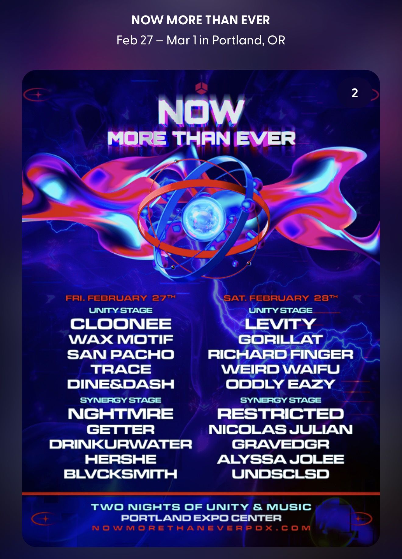 Two (2) tickets to Now More Than Ever (Friday 2/27). Something came up and unable to make it. $60 each OBO