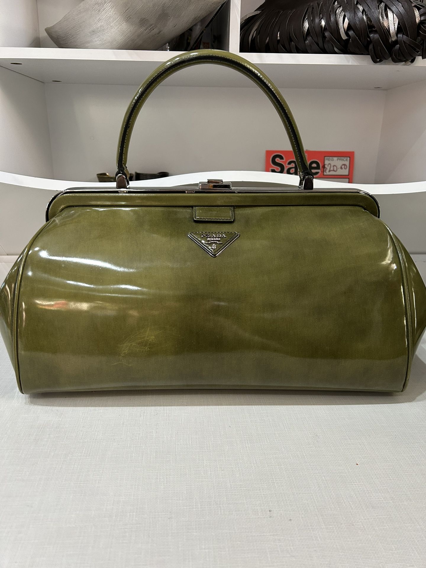 VINTAGE 2000’S PRADA PUSH LOCK MILLITARY GREEN HAND HELD BAG WITH COA CARD
