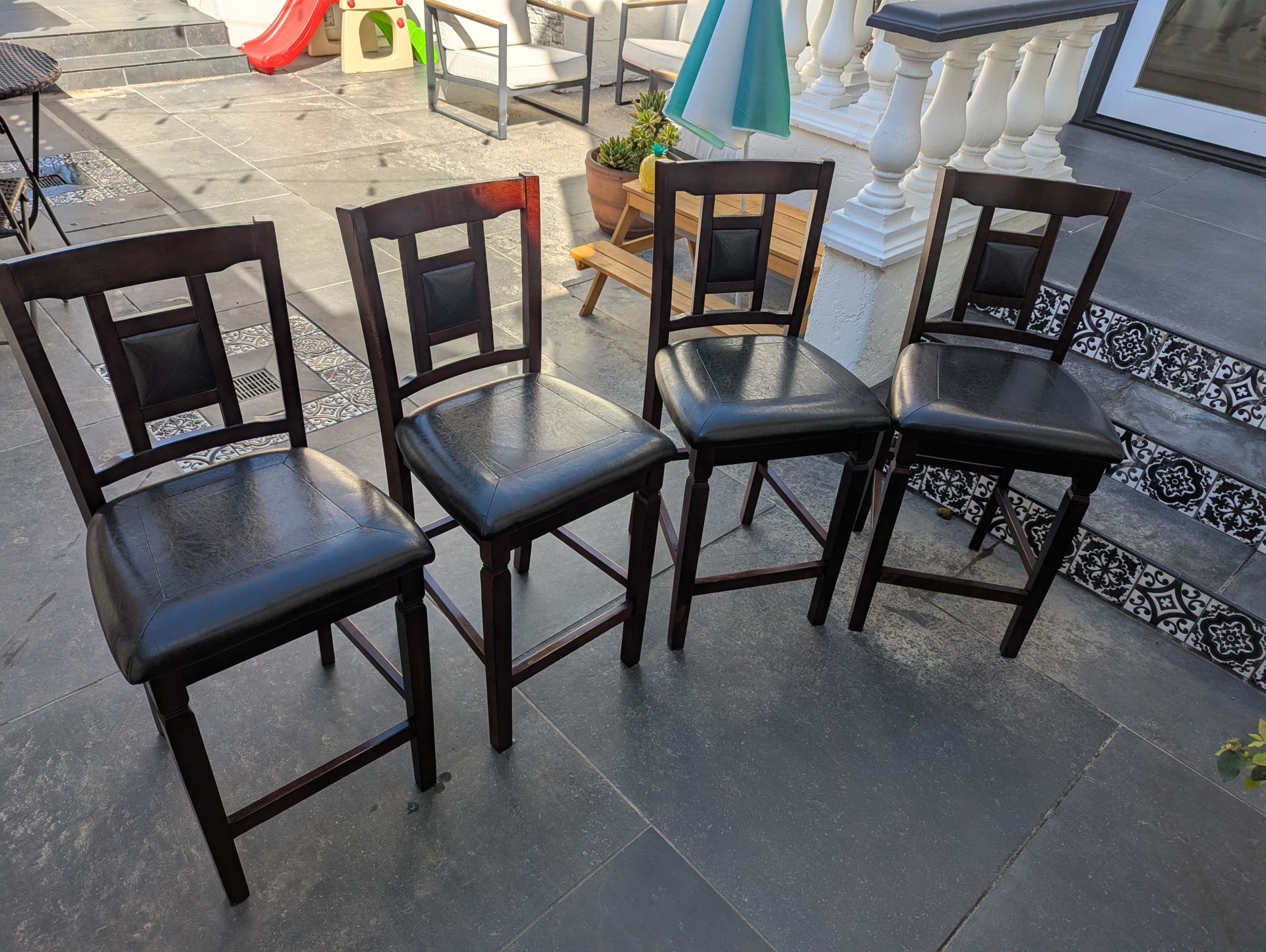 Set of four high bar stools. Approximately 18"x18"x40" overall. Seat is 25" high. $20 each or $60 for all 4.