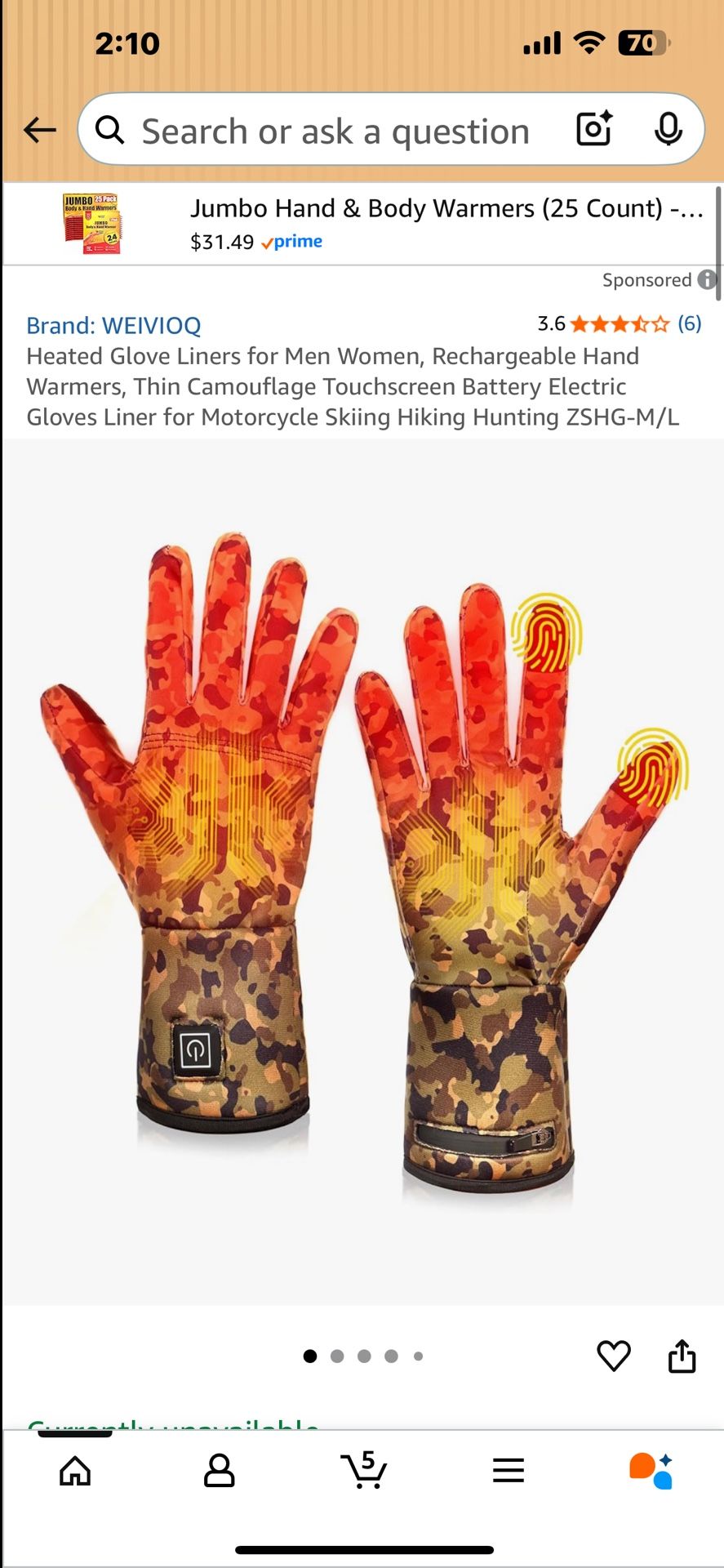New Heated Glove Liners for Men Women, Rechargeable Hand Warmers, Thin Camouflage Touchscreen Battery Electric Gloves Liner for Motorcycle Skiing Hiking Hunting ZSHG-M/L