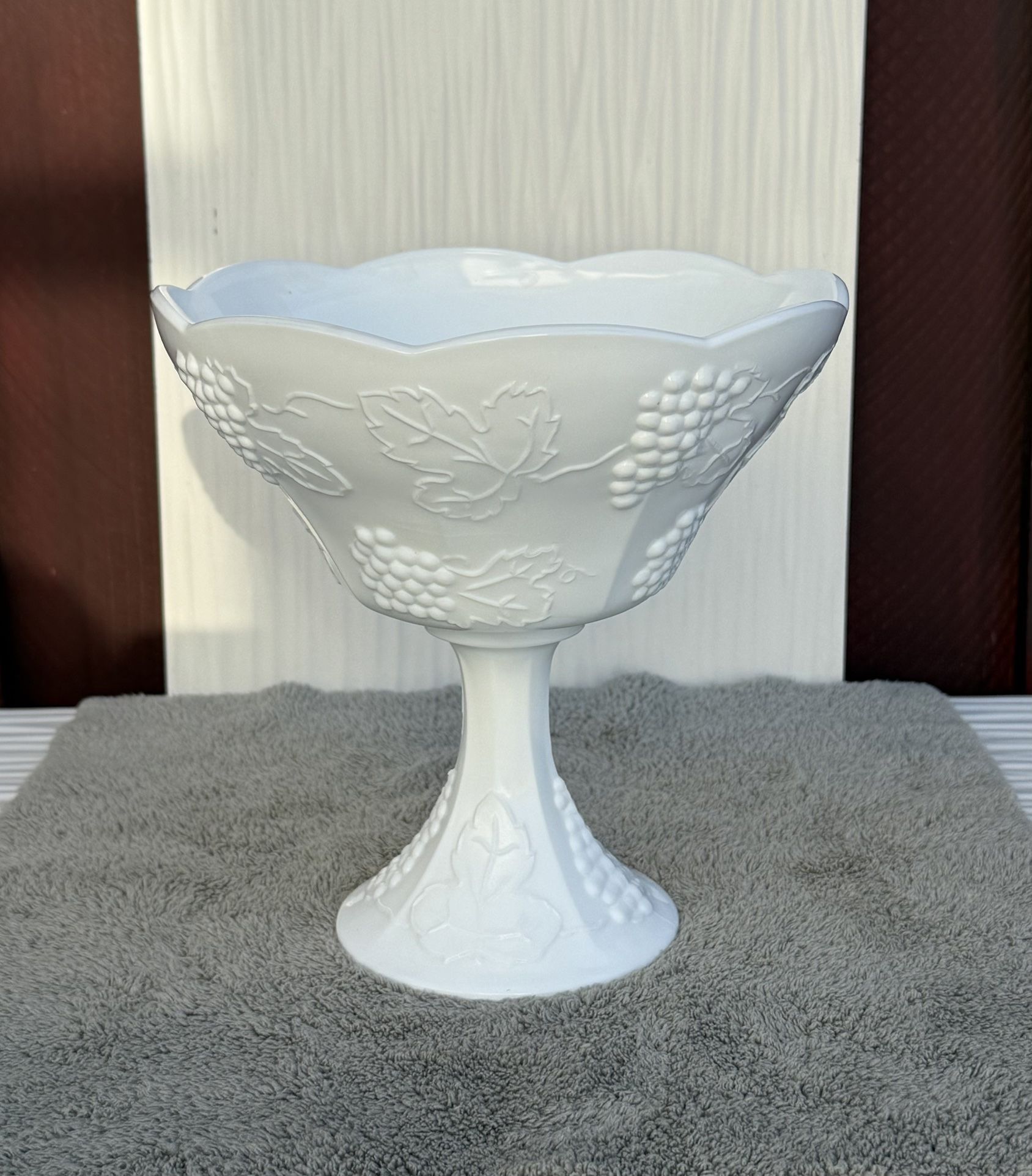 Vintage Indiana Colony Milk Glass Pedestal Harvest Grapes Bowl 8.5"H