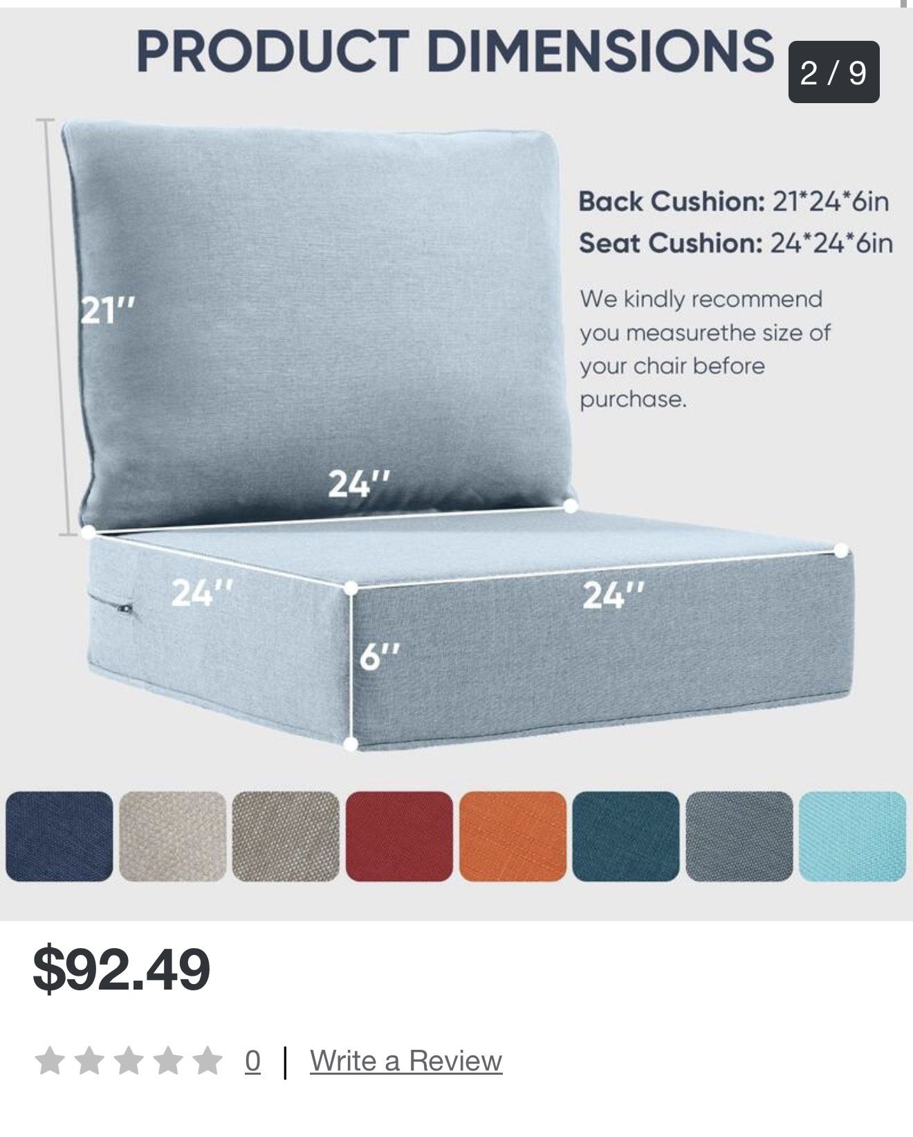 Outdoor Deep Seat Cushion 24 x 24 x 6 Inch - Baby Blue - 6 Inch byPocassy