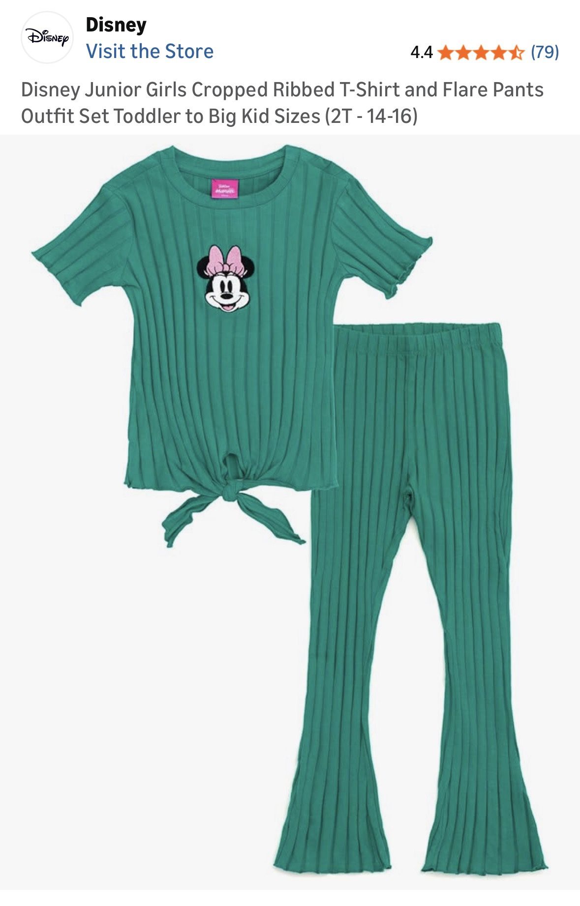Disney Junior Girls Cropped Ribbed T-Shirt and Flare Pants Outfit Set Toddler to Big Kid Size 6/7