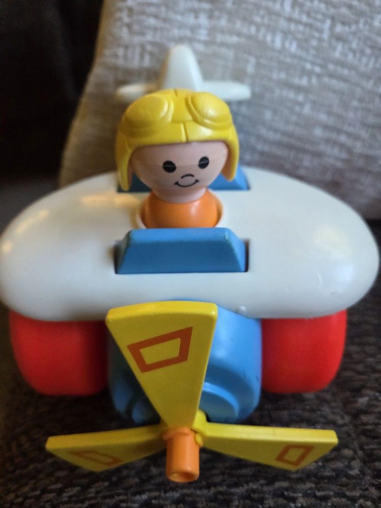 Vintage Fisher Price Airplane Plane Pull Toy Pilot #171 Little People 1980 IM