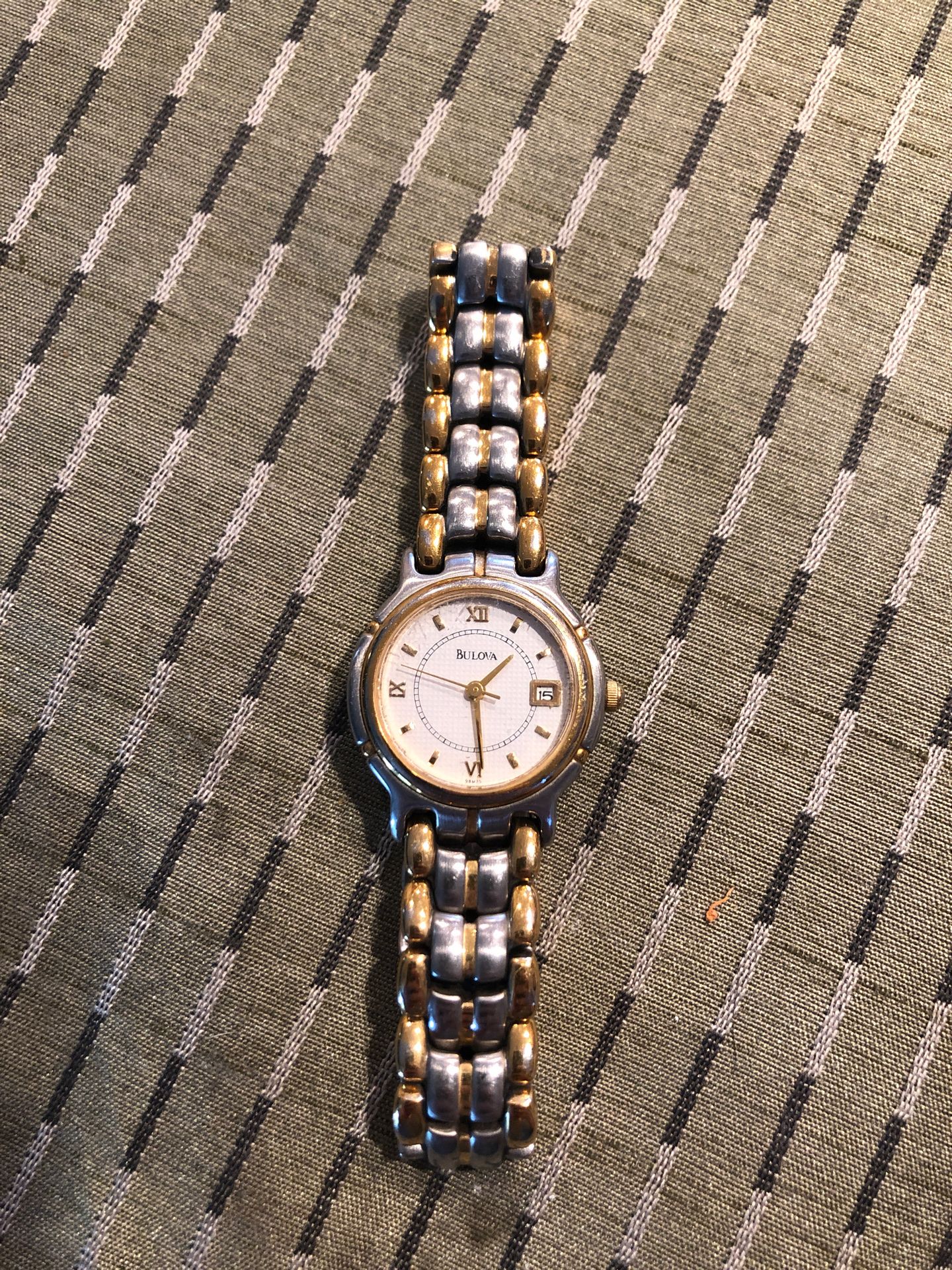 Women’s watch with silver and gold tone accents. Three hand face. Water resistant. Paid $350.
