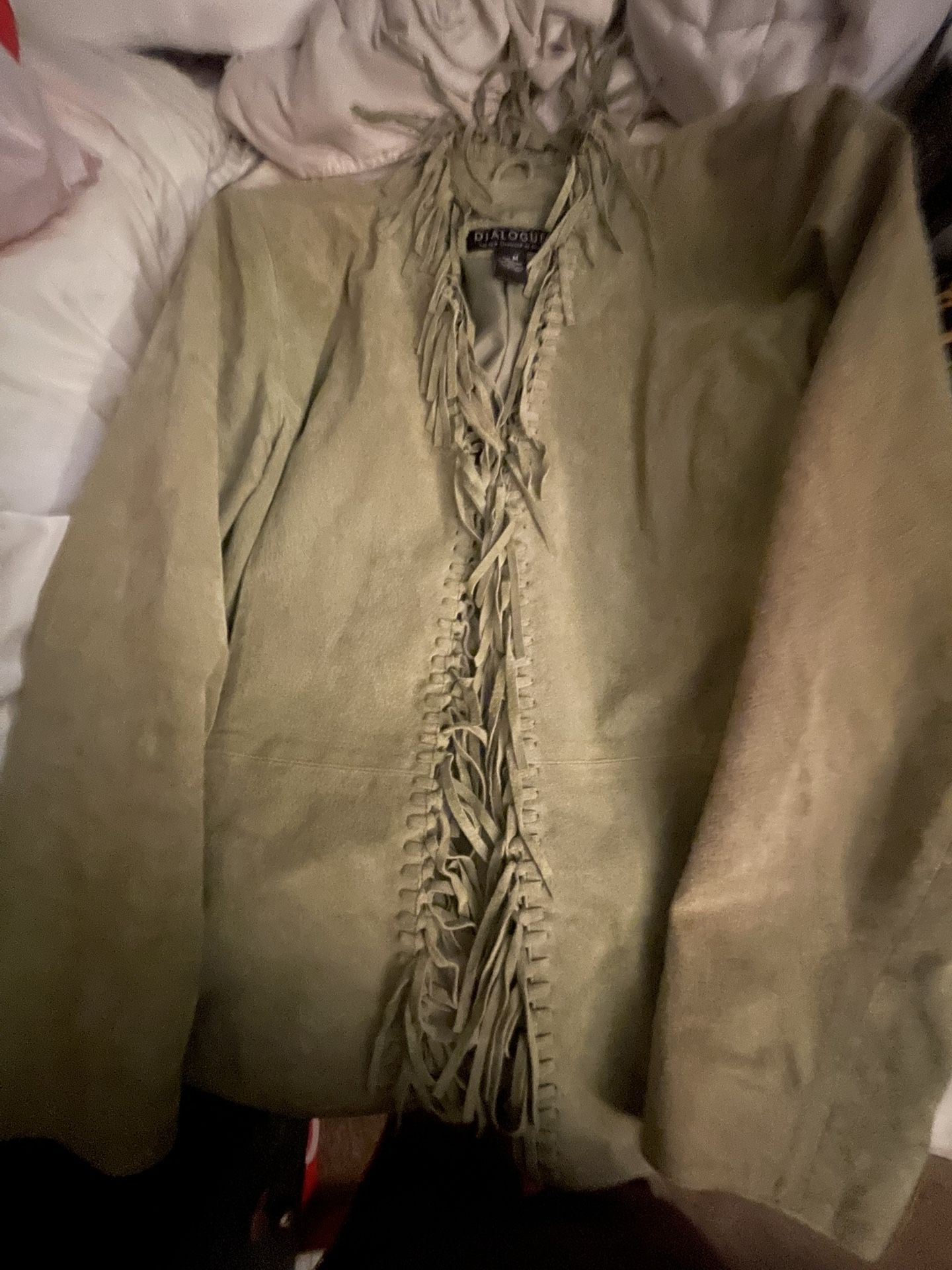 Olive Green Leather Fringed Jacket
