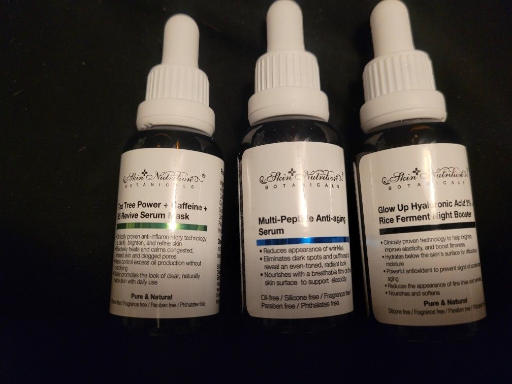 Skin nutrition botanicals lot Tea tree power revive serum mask Multipeptide anti-aging serum Hyaluronic acid rice ferment night booster