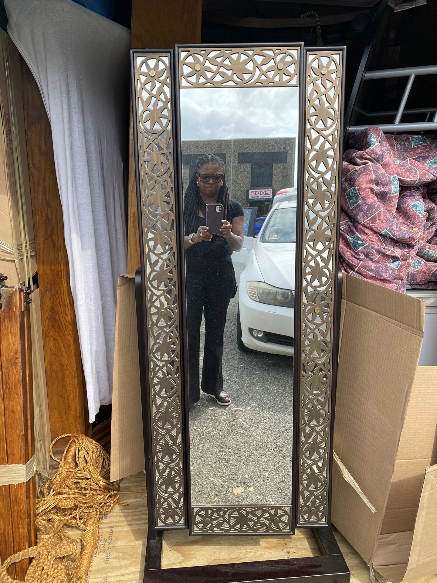 This jewelry armoire offers multiple functionalities along with style. The mirrored front can act like a floor mirror. Each of the three sections open to cabinets that have organized storage space for jewelry and accessories. The stand allows you to tilt the wardrobe in any angle to give you a full visual of your jewelry. Features: Combines style and function Perfect for storing your favorite jewelry pieces Ample storage space Features a full length mirror front