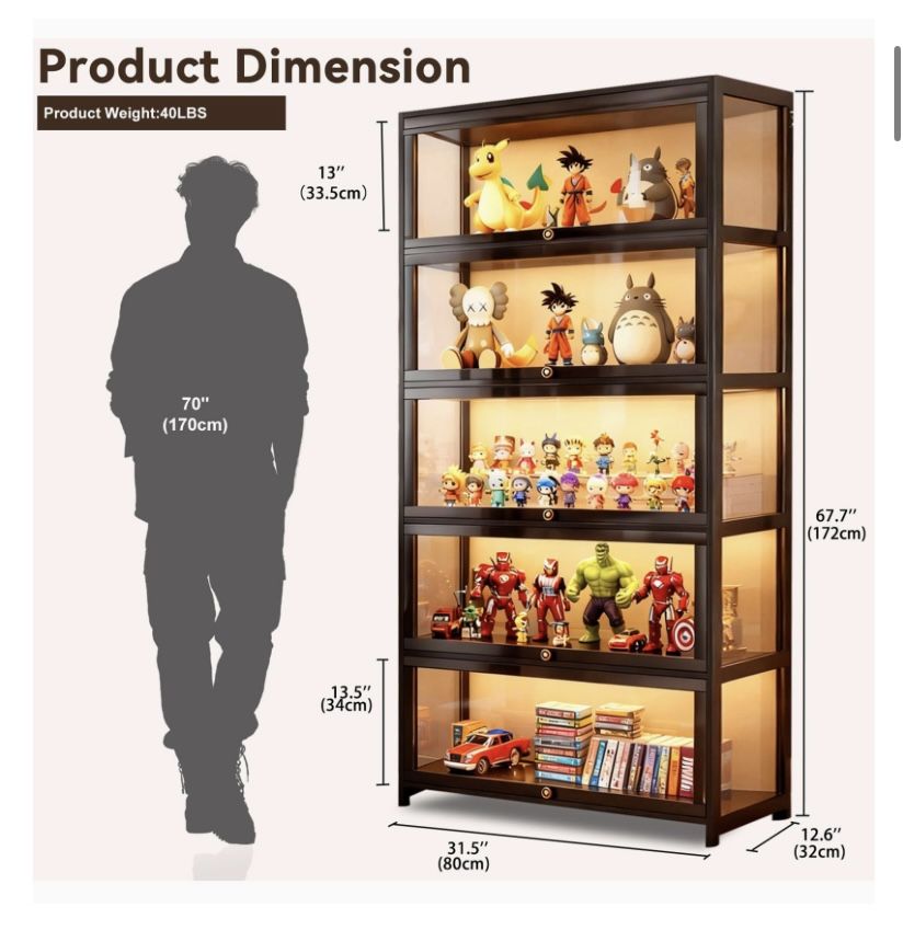 Display Cabinet with Acrylic Glass Doors 5-Tier Curio Cabinet - Collectibles Toy Organizers Rack & Display Shelf