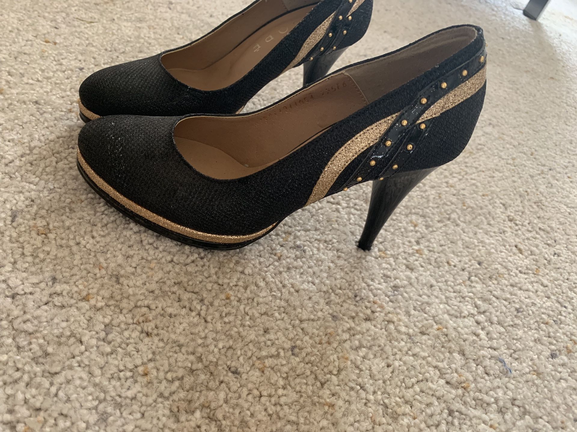 Sexy black pumps with sparkles and beautiful details. Never worn Us size 5.5-6 225mm-230mm