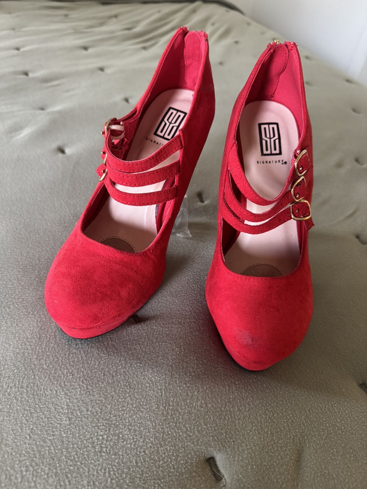 Brand new signature red heels π never worn β the heel is just too tall and thin for me. Size 7.5. Minor mark from storage only. Extra heel caps attached on the bottom of the heel.