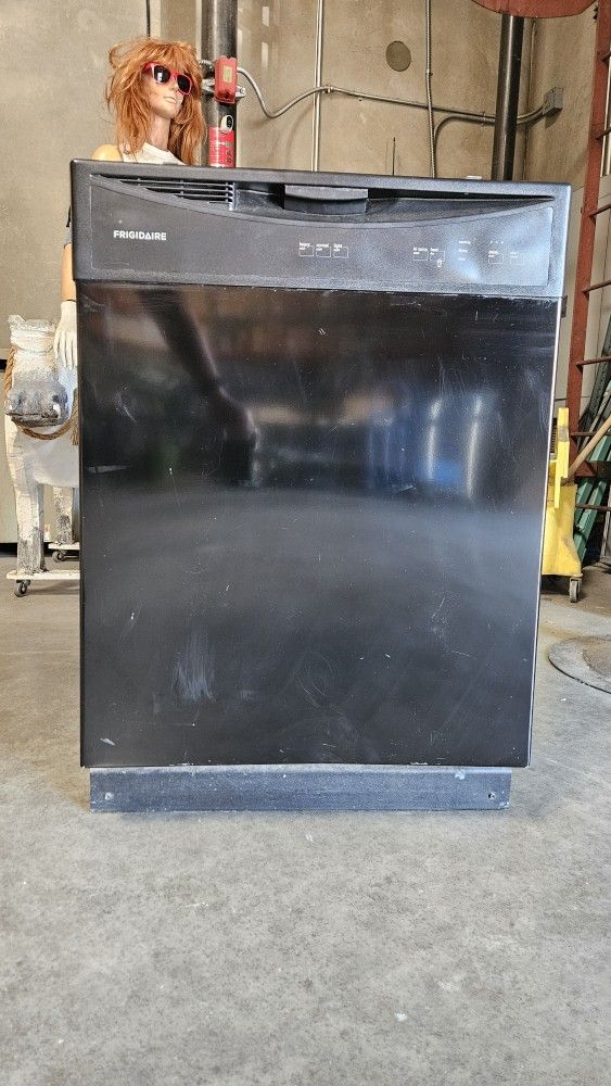 Frigidaire dishwasher, black. Old but still works good. Small dent at center bottom. FREE