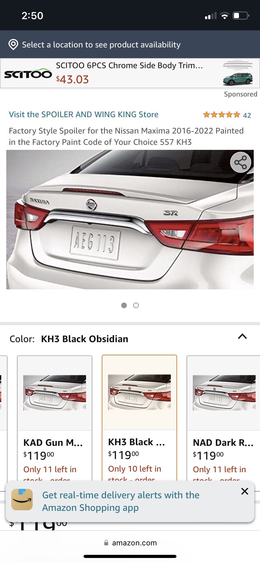 Brand new Nissan maxima spoiler in black sold the car and never got to install.. paid 130 selling for $80 firm pick up in Moreno Valley thanls