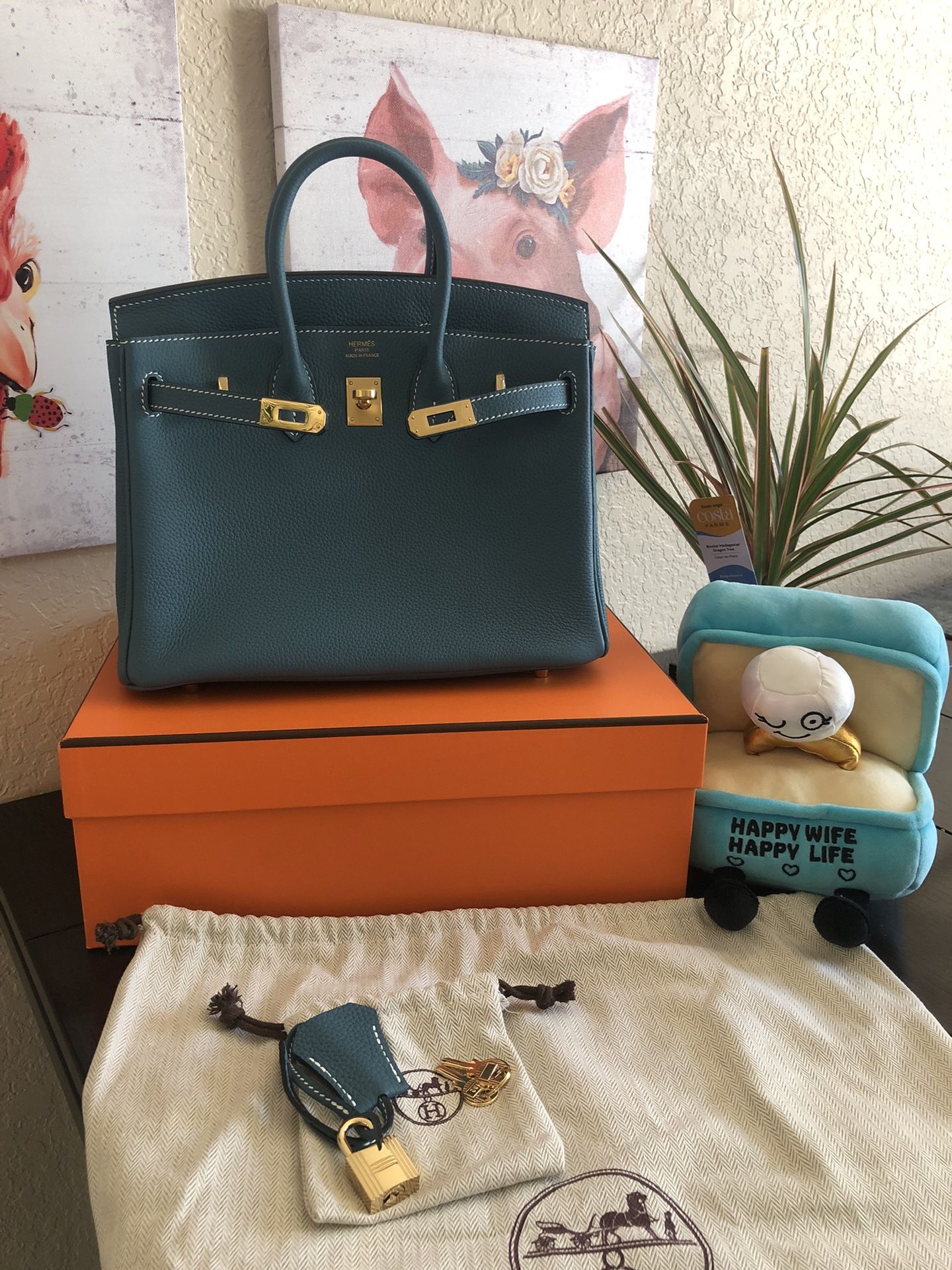 Hermes Birkin 25 🥏 blue Jean /ocean blue color rare to find ✅gold hardware ✅smooth Togo leather exterior ✅smooth swift leather interior finish ✅hand made ✅manually stitched 🧵 by hand - comes with authentic dust bag only -key and lock + clochet Brand new Available for shipping or pick up (No tax) (Orange Box is for display purposes only) Made in Dubai (not in China) Master copy 1:
