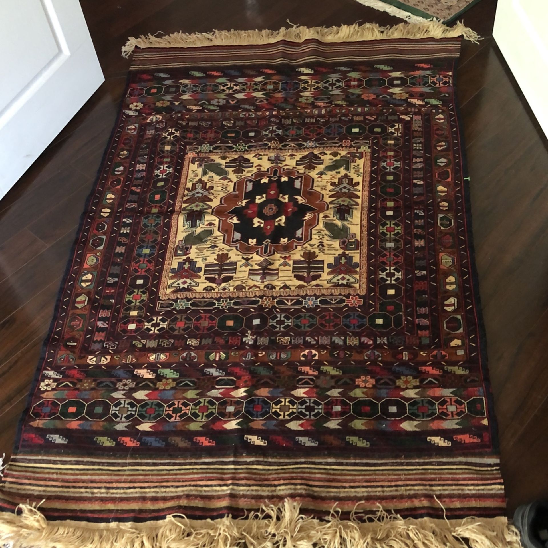73” X 47” Hand Made Afghanistan Rug. Brought from there a few years back and never used. Is brand new.